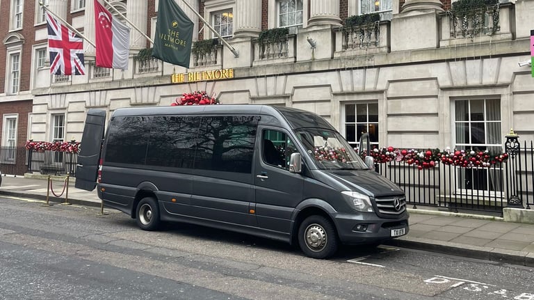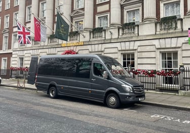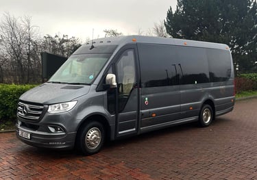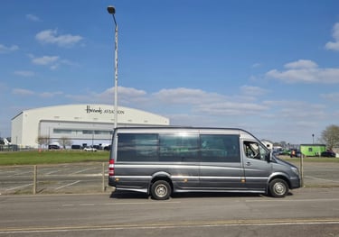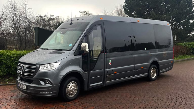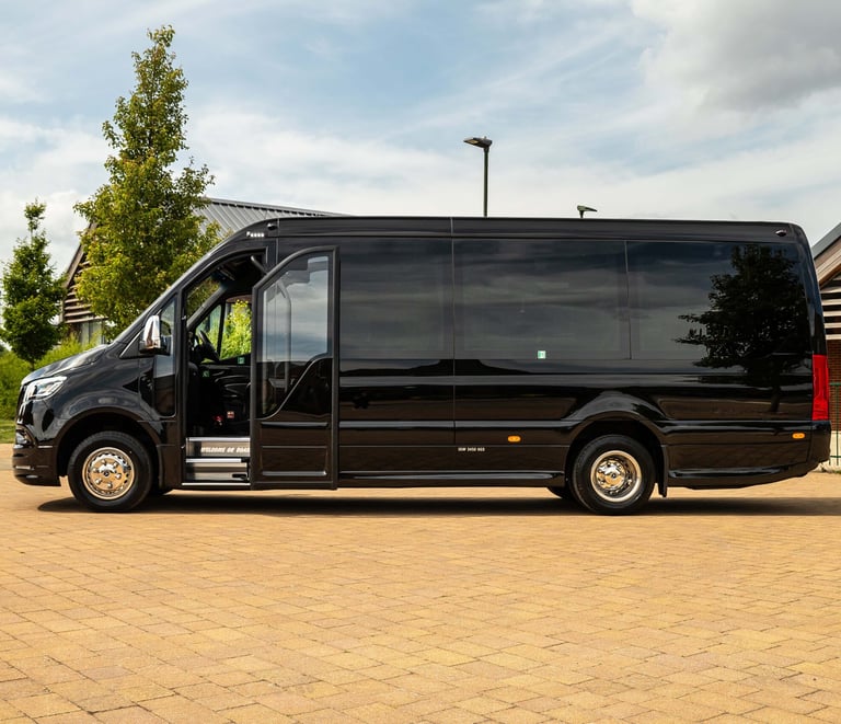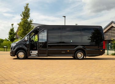 Our Mercedes Sprinter EVM Executive Sprinter is perfect for up to 19 passengers and suitcases. Perfect for airports & corporate events.