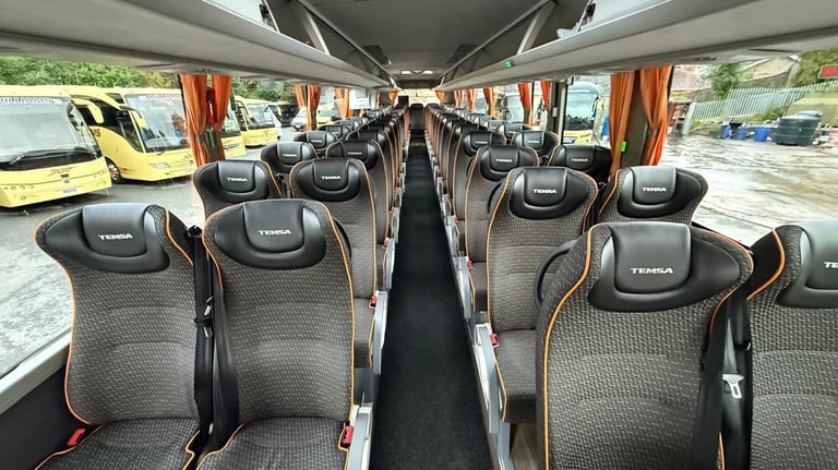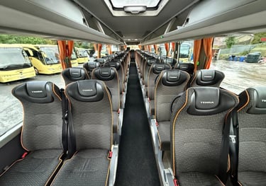 Ride in comfort with our reclining leather interior in all our 57 Seaters. We also have on board entertainment systems, USB Charging and W/C.